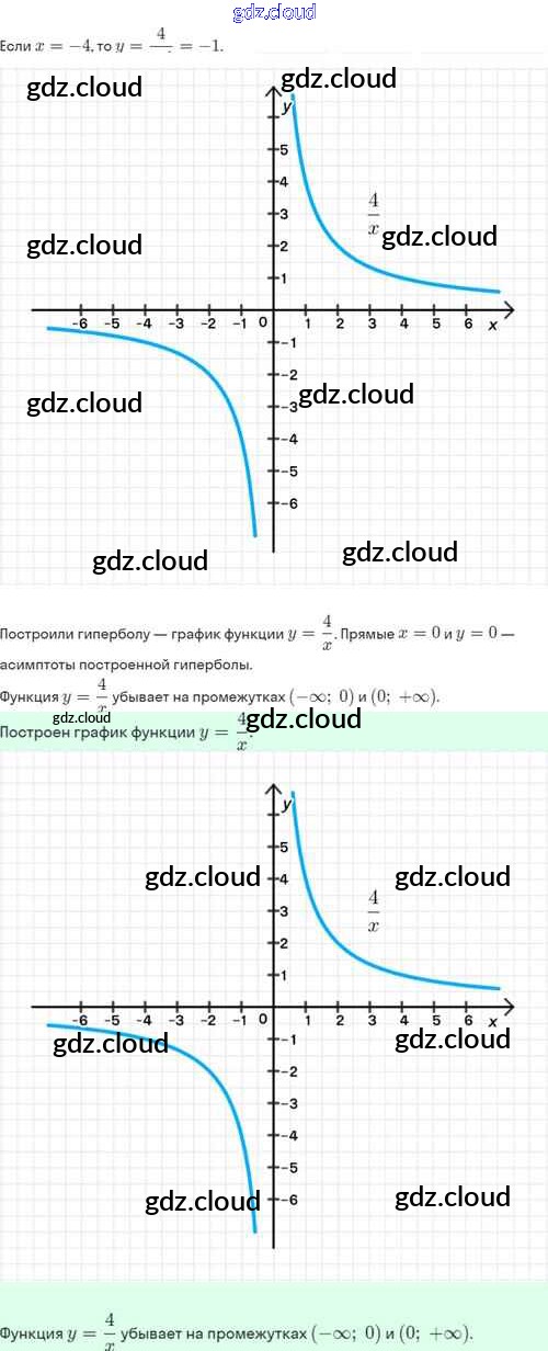 Ответы. §20. Функция y=k/x, её свойства и график по Алгебре 8 класс Задачник Мордкович Базовый уровень Часть 2 Мнемозина