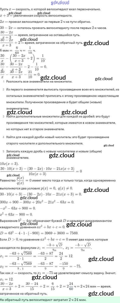 Ответы. §30. Рациональные уравнения как математические модели реальных ситуаций по Алгебре 8 класс Задачник Мордкович Базовый уровень Часть 2 Мнемозина