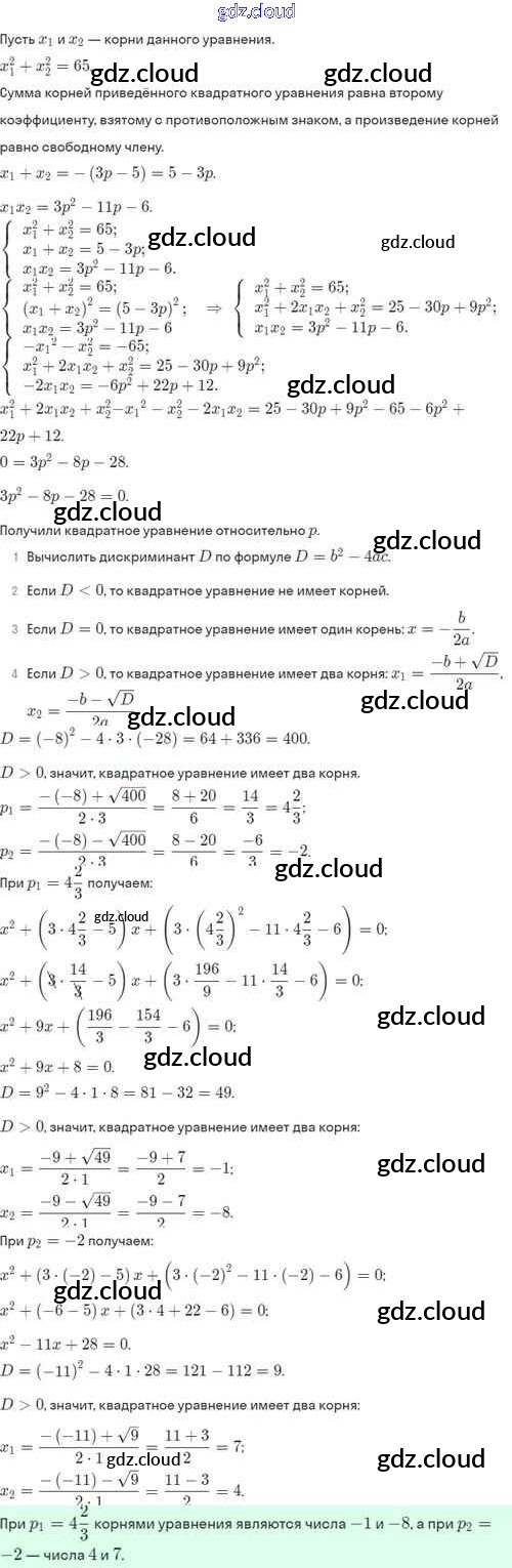 Ответы. §32. Теорема Виета и её применение по Алгебре 8 класс Задачник Мордкович Базовый уровень Часть 2 Мнемозина