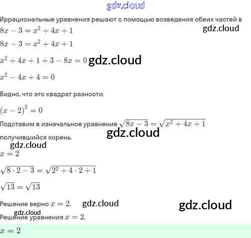 Ответы. §33. Иррациональные уравнения по Алгебре 8 класс Задачник Мордкович Базовый уровень Часть 2 Мнемозина