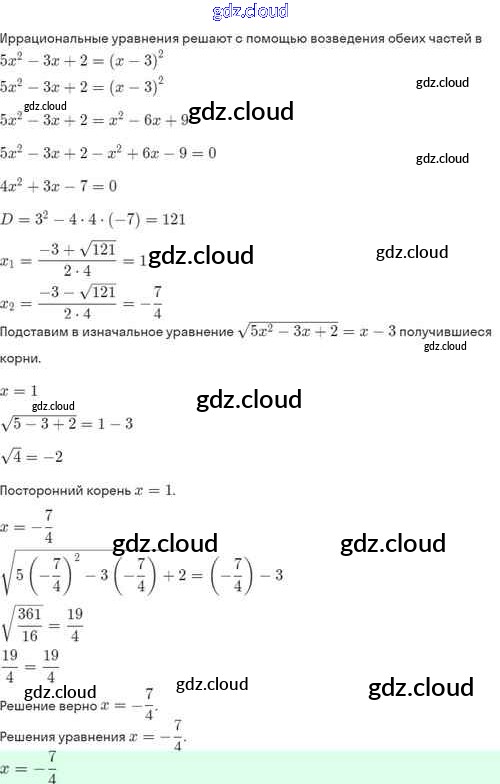 Ответы. §33. Иррациональные уравнения по Алгебре 8 класс Задачник Мордкович Базовый уровень Часть 2 Мнемозина
