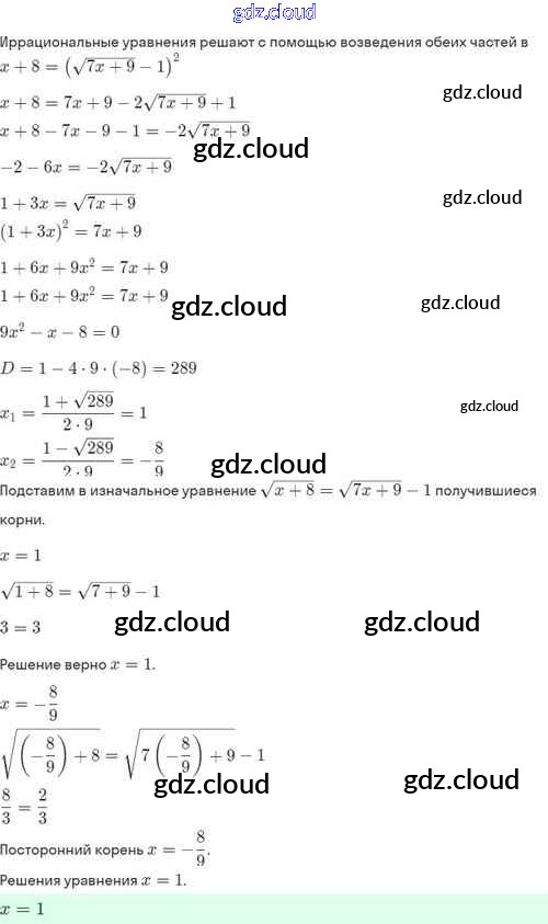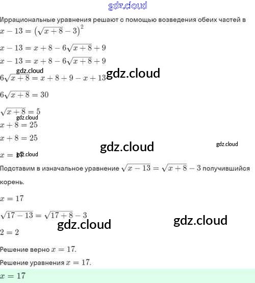 Ответы. §33. Иррациональные уравнения по Алгебре 8 класс Задачник Мордкович Базовый уровень Часть 2 Мнемозина