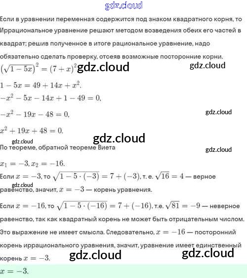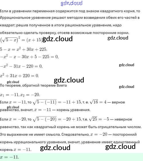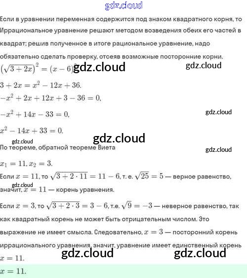 Ответы. §33. Иррациональные уравнения по Алгебре 8 класс Задачник Мордкович Базовый уровень Часть 2 Мнемозина