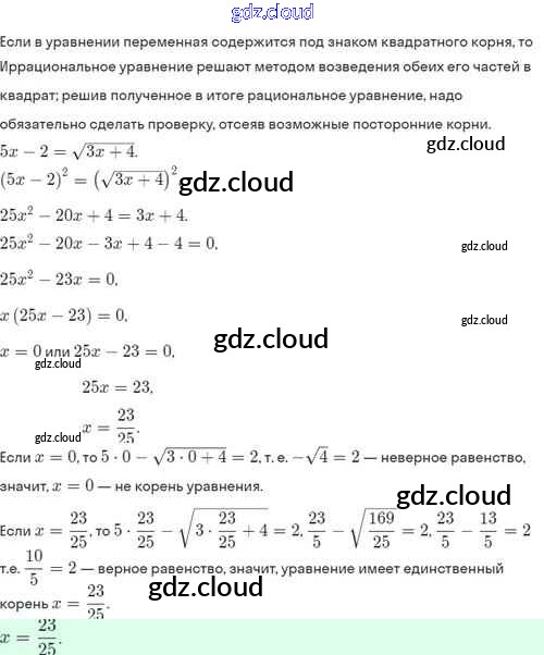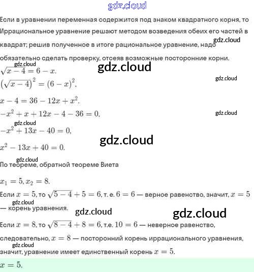 Ответы. §33. Иррациональные уравнения по Алгебре 8 класс Задачник Мордкович Базовый уровень Часть 2 Мнемозина
