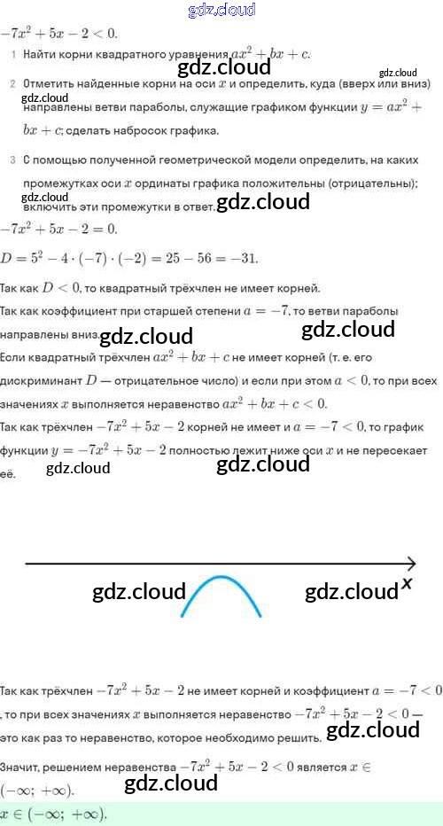 Ответы. §37. Решение квадратных неравенств по Алгебре 8 класс Задачник Мордкович Базовый уровень Часть 2 Мнемозина