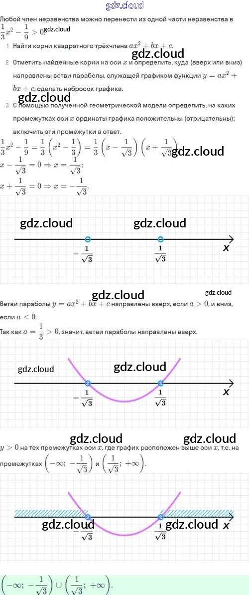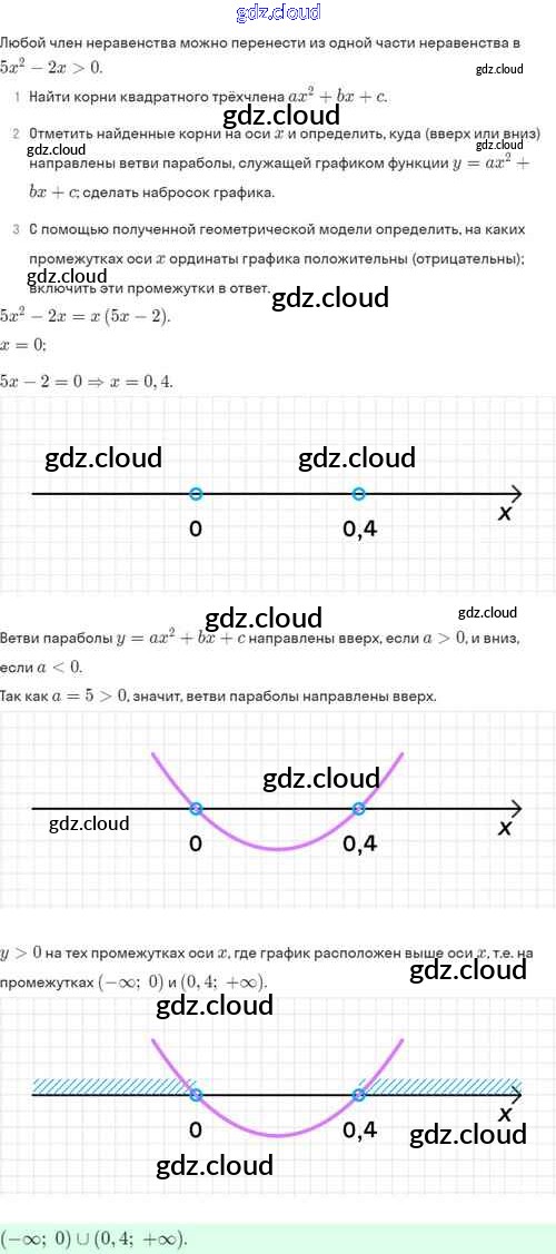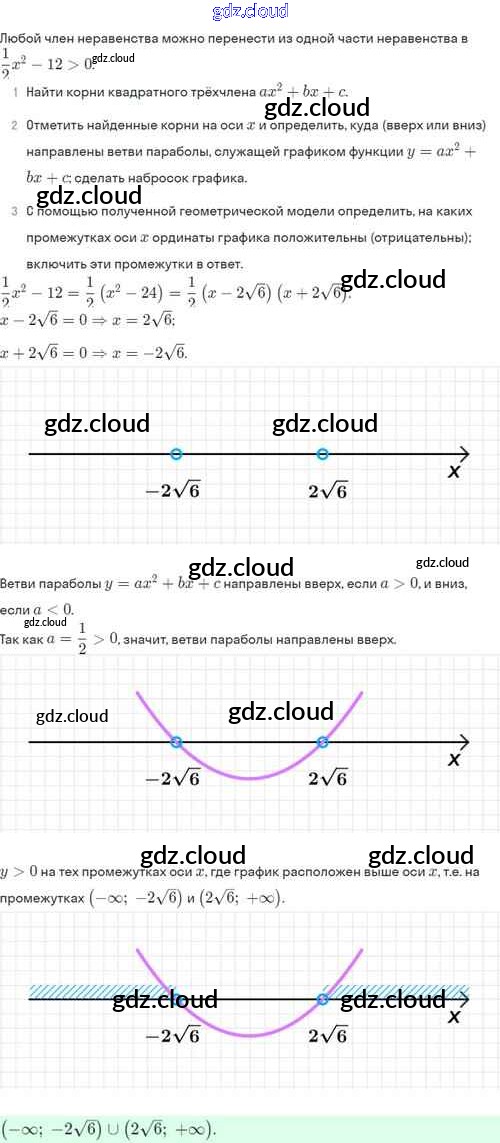 Ответы. §37. Решение квадратных неравенств по Алгебре 8 класс Задачник Мордкович Базовый уровень Часть 2 Мнемозина