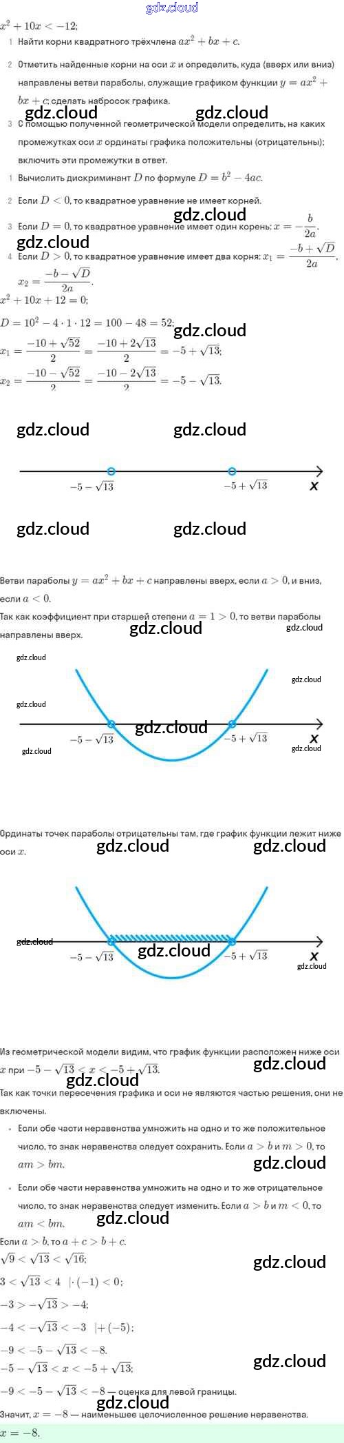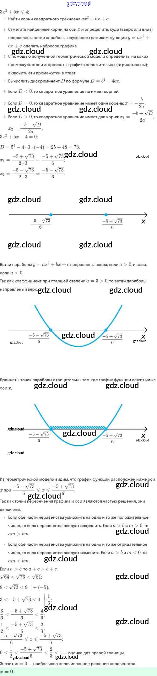 Ответы. §37. Решение квадратных неравенств по Алгебре 8 класс Задачник Мордкович Базовый уровень Часть 2 Мнемозина