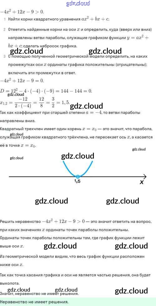 Ответы. §37. Решение квадратных неравенств по Алгебре 8 класс Задачник Мордкович Базовый уровень Часть 2 Мнемозина