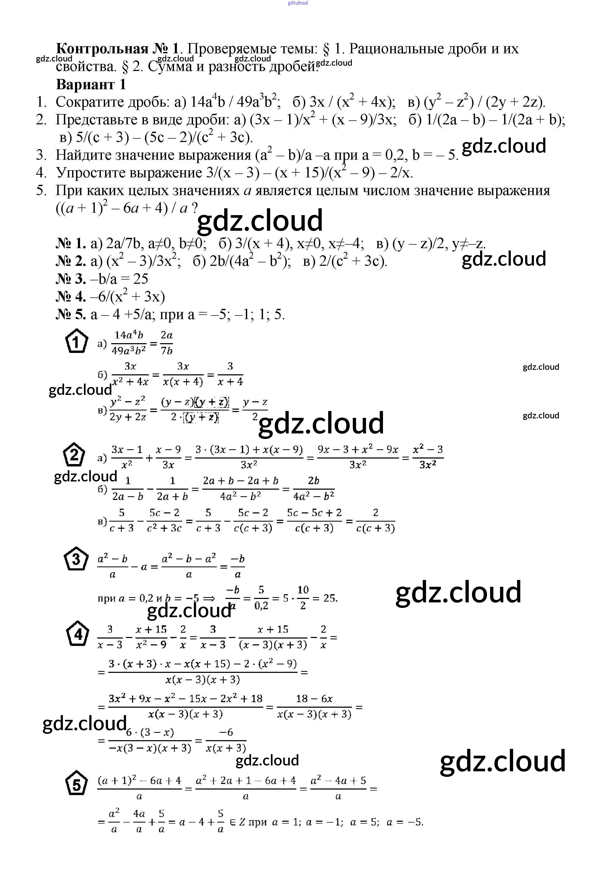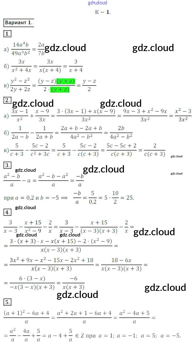 КР №1 Ответы к Контрольным работам по Алгебре 8 класс Дидактические материалы Жохов Просвещение