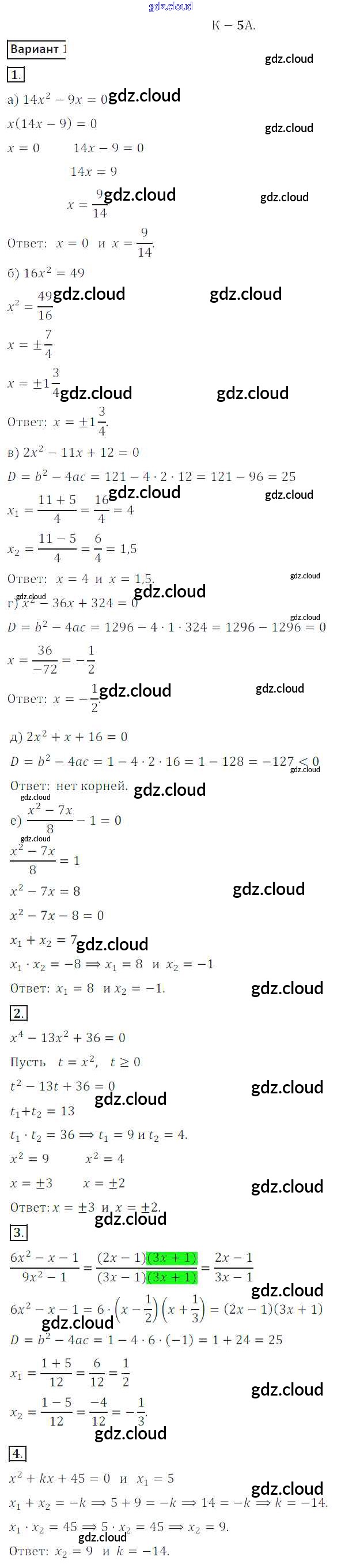 КР №5A Ответы к Контрольным работам по Алгебре 8 класс Дидактические материалы Жохов Просвещение