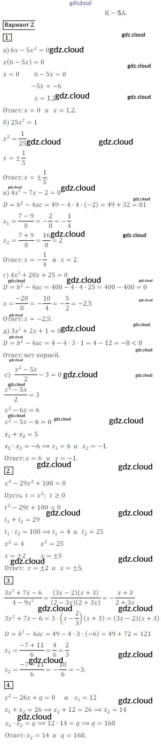 КР №5A Ответы к Контрольным работам по Алгебре 8 класс Дидактические материалы Жохов Просвещение