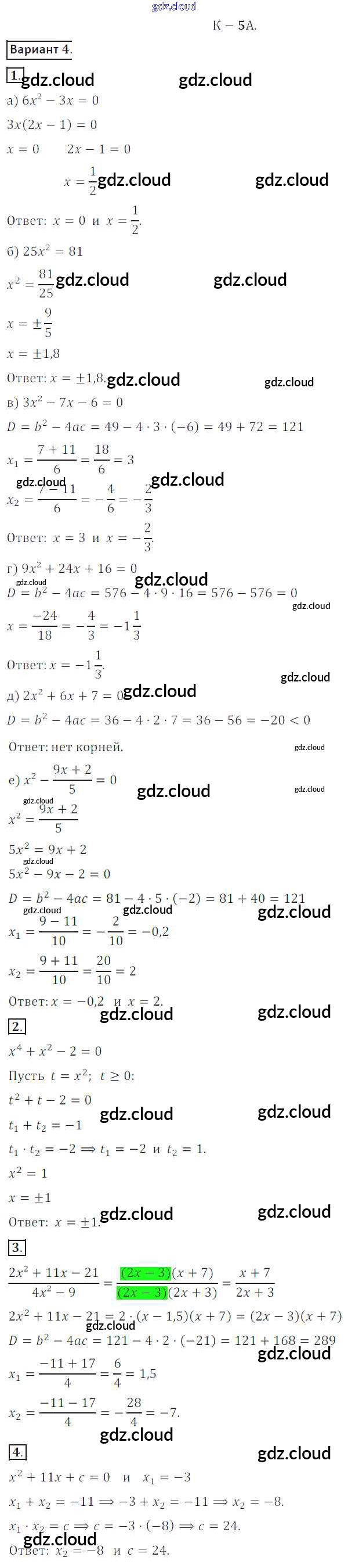 КР №5A Ответы к Контрольным работам по Алгебре 8 класс Дидактические материалы Жохов Просвещение