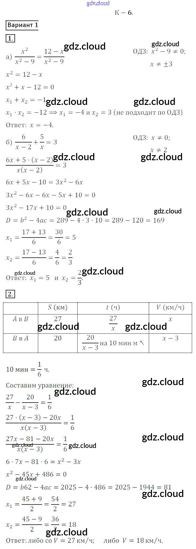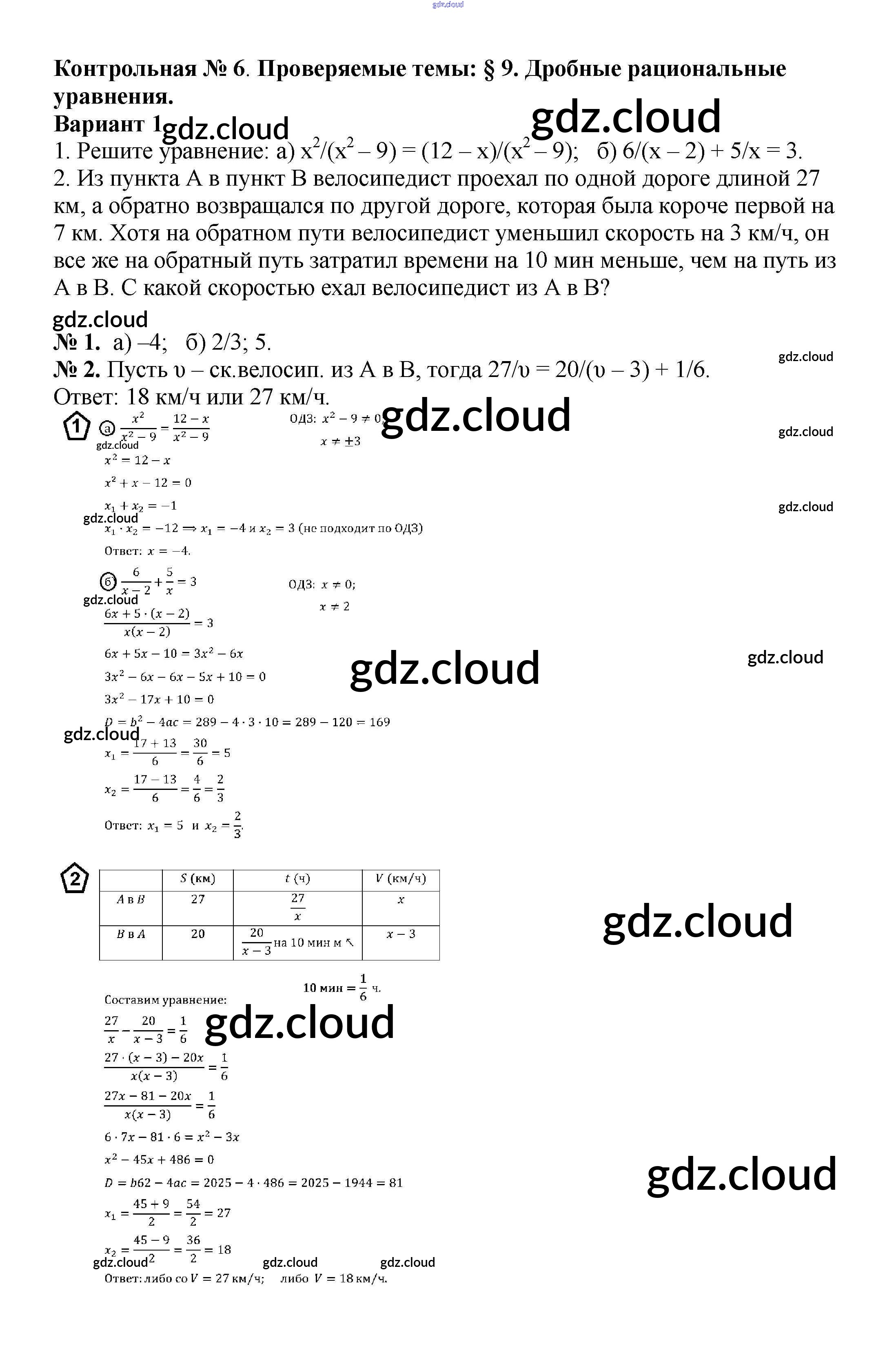 КР №6 Ответы к Контрольным работам по Алгебре 8 класс Дидактические материалы Жохов Просвещение