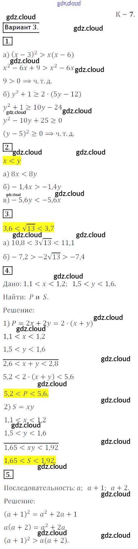КР №7 Ответы к Контрольным работам по Алгебре 8 класс Дидактические материалы Жохов Просвещение