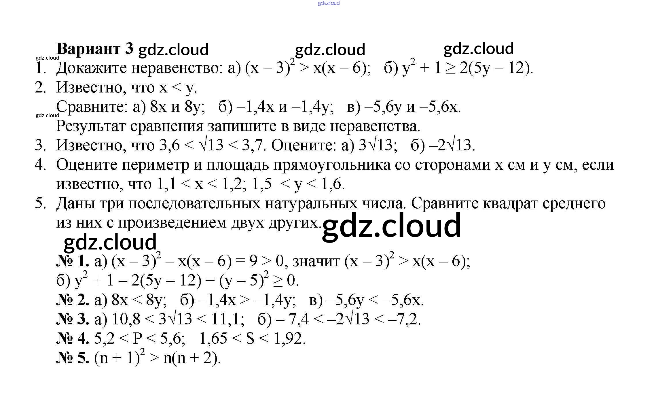 Ответ на задание вариант 3 Дидактические материалы Алгебра за 8 (восьмой) класс Жохов, Макарычев, Миндюк 2014