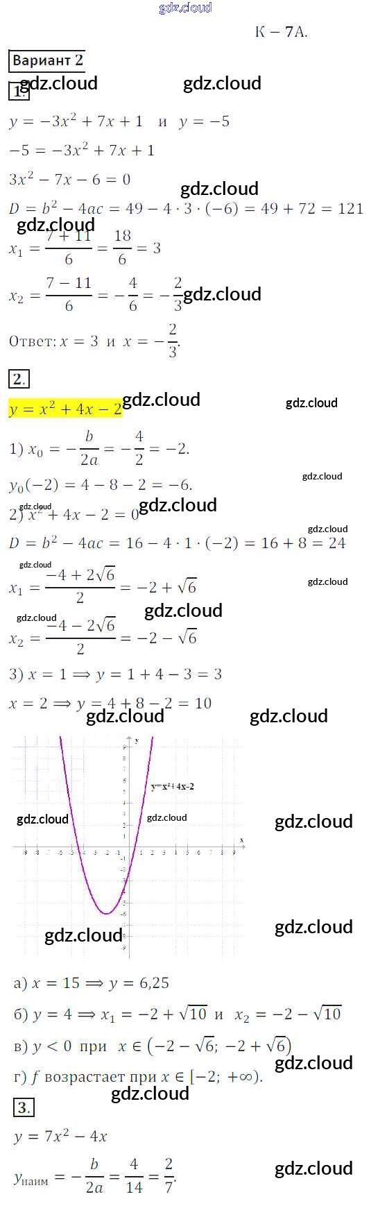 КР №7A Ответы к Контрольным работам по Алгебре 8 класс Дидактические материалы Жохов Просвещение