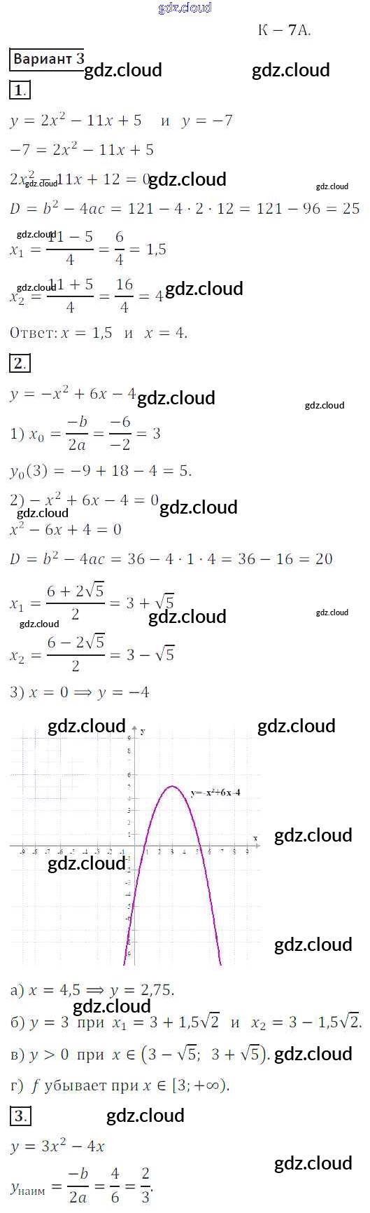 КР №7A Ответы к Контрольным работам по Алгебре 8 класс Дидактические материалы Жохов Просвещение