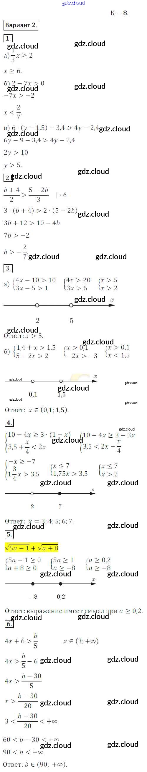 КР №8 Ответы к Контрольным работам по Алгебре 8 класс Дидактические материалы Жохов Просвещение