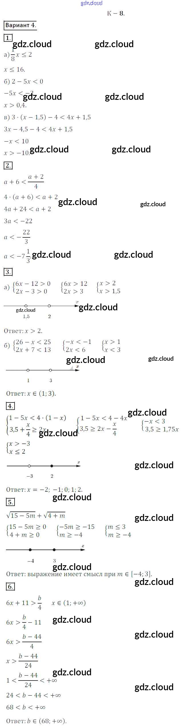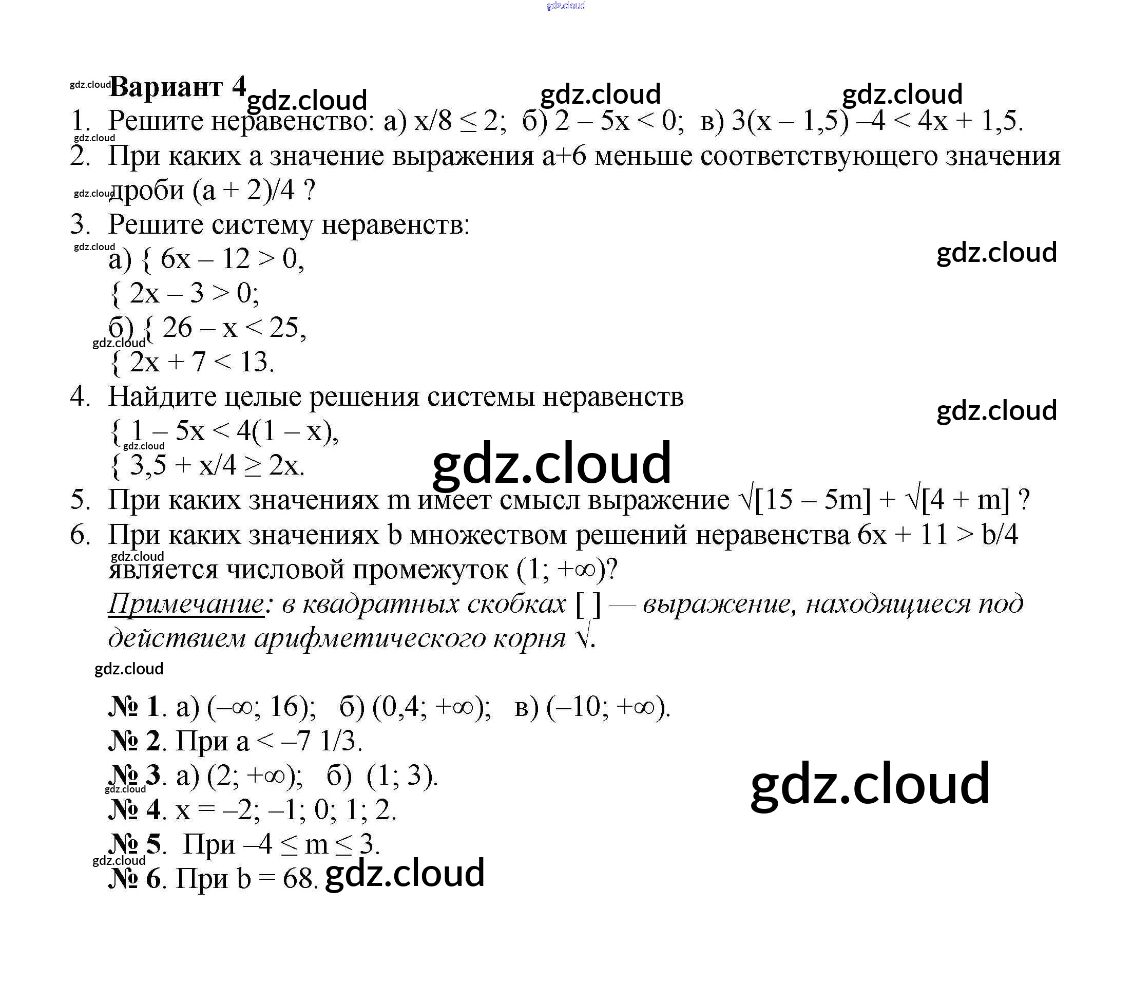 Ответ на задание вариант 4 Дидактические материалы Алгебра за 8 (восьмой) класс Жохов, Макарычев, Миндюк 2014