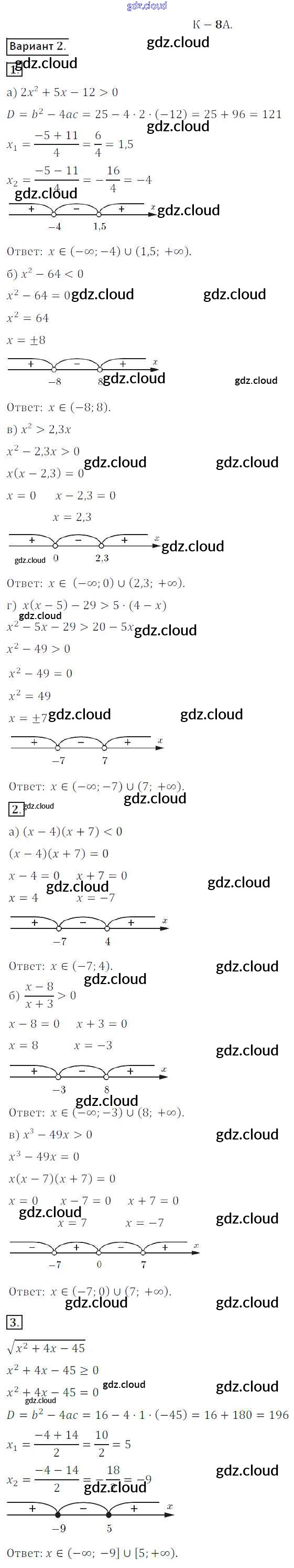КР №8A Ответы к Контрольным работам по Алгебре 8 класс Дидактические материалы Жохов Просвещение