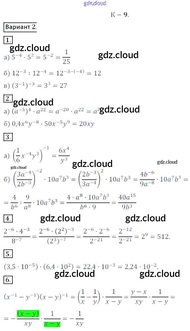 КР №9 Ответы к Контрольным работам по Алгебре 8 класс Дидактические материалы Жохов Просвещение
