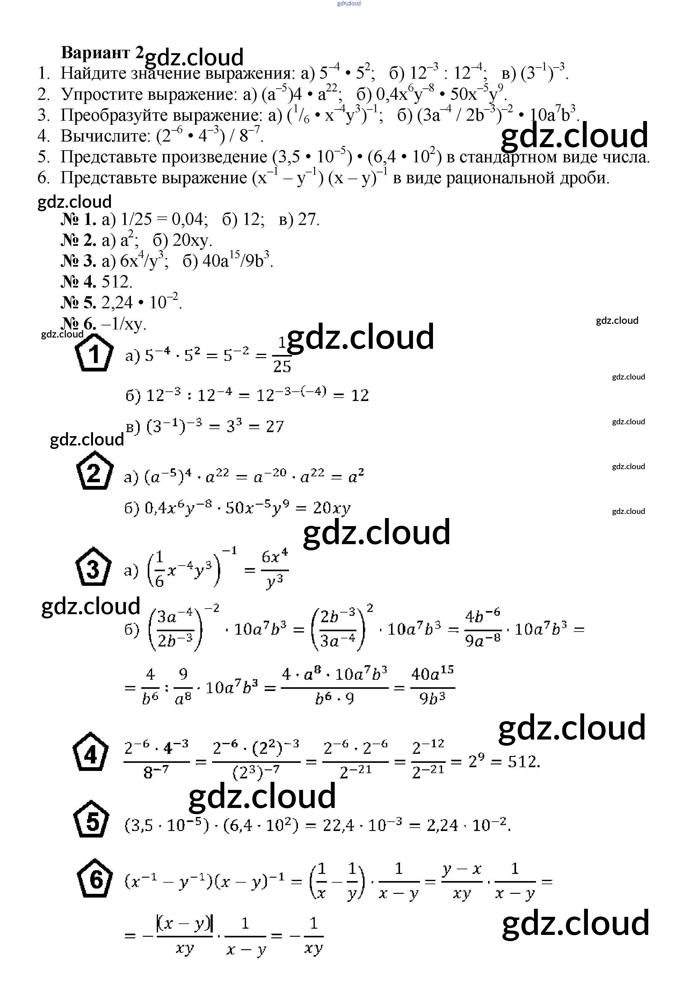 Ответ на задание вариант 2 Дидактические материалы Алгебра за 8 (восьмой) класс Жохов, Макарычев, Миндюк 2014