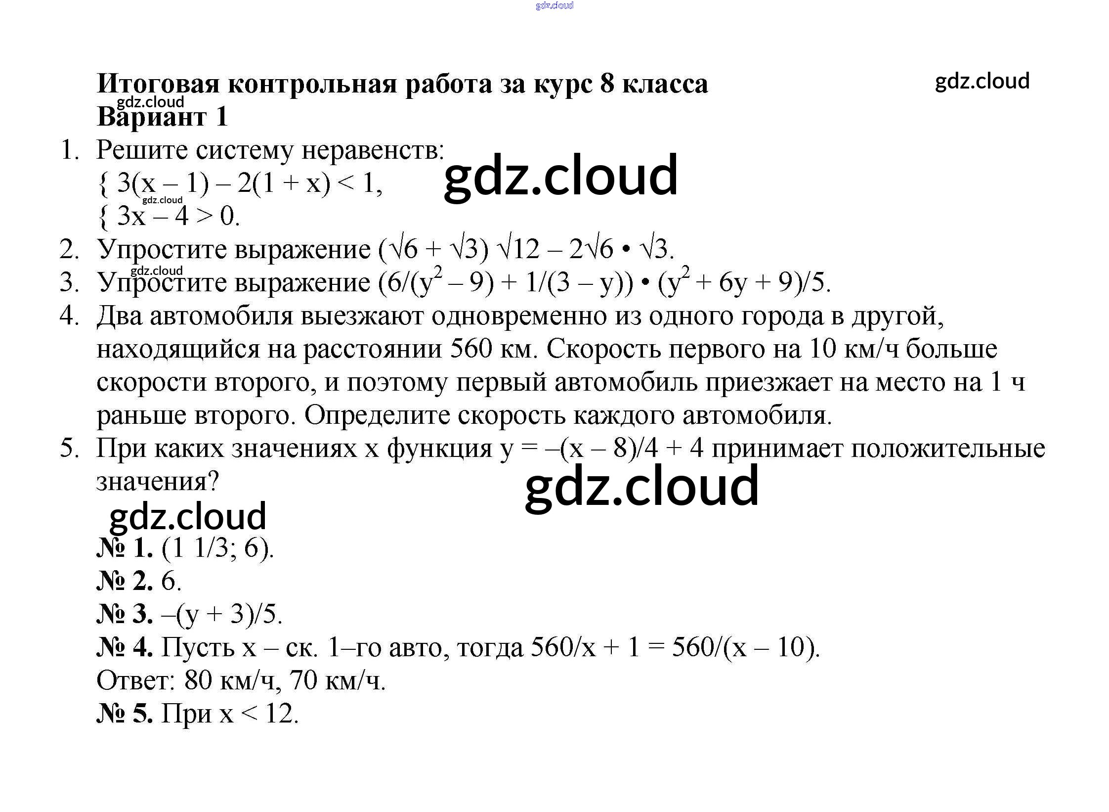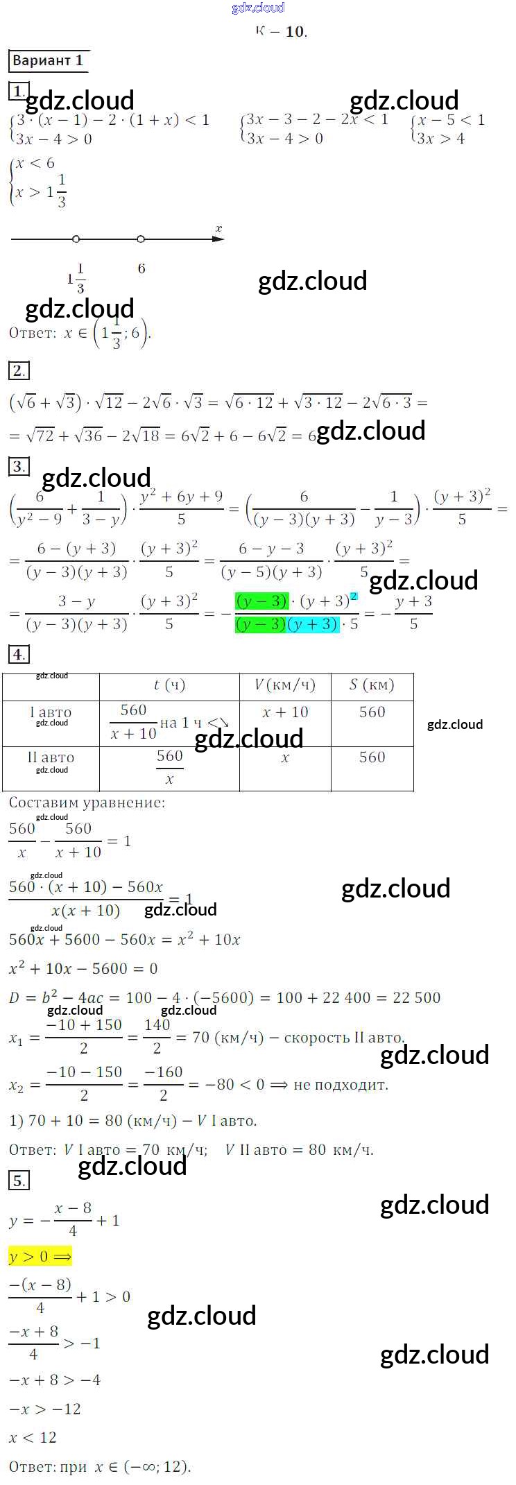 КР №10 Ответы к Контрольным работам по Алгебре 8 класс Дидактические материалы Жохов Просвещение