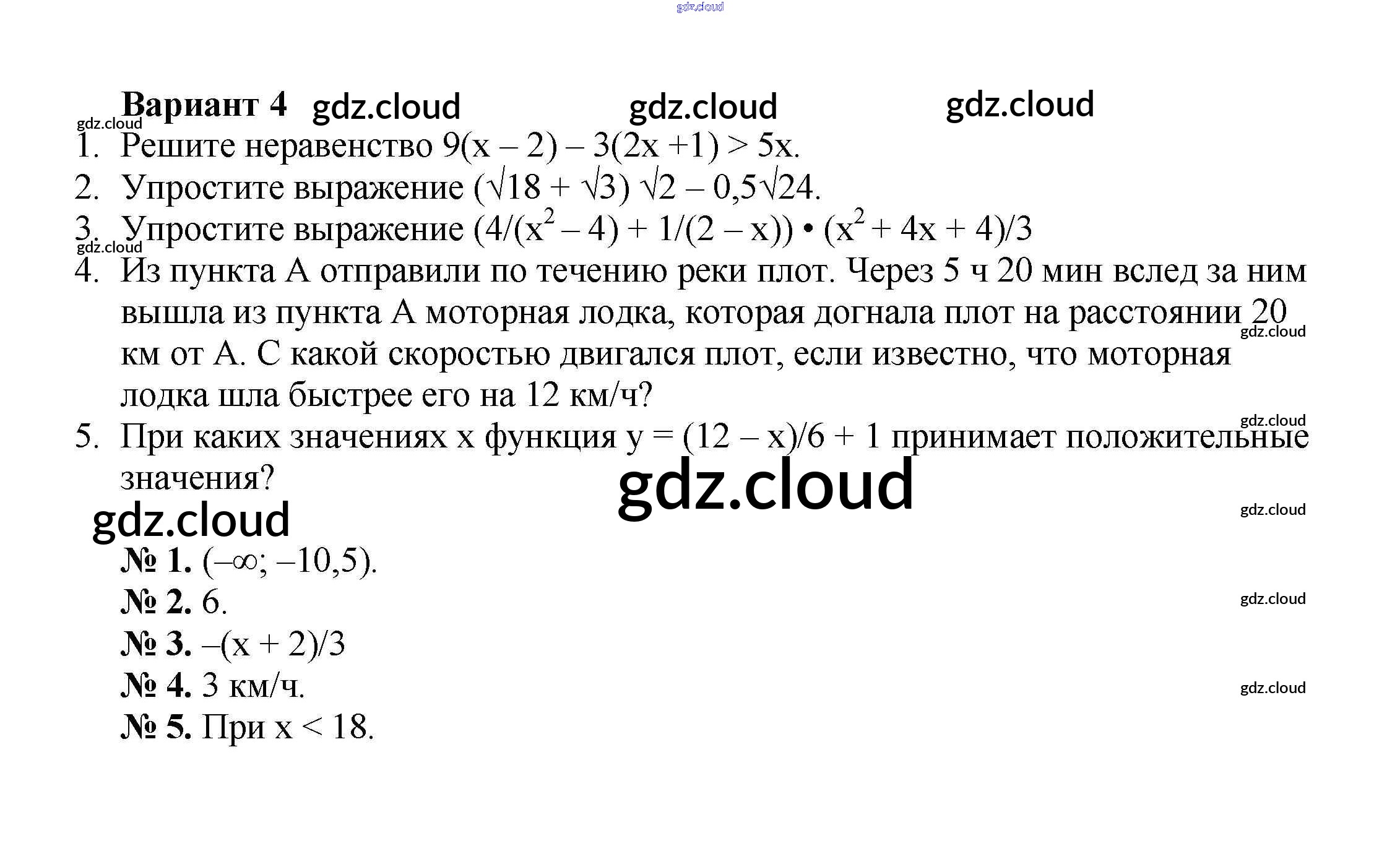 Ответ на задание вариант 4 Дидактические материалы Алгебра за 8 (восьмой) класс Жохов, Макарычев, Миндюк 2014