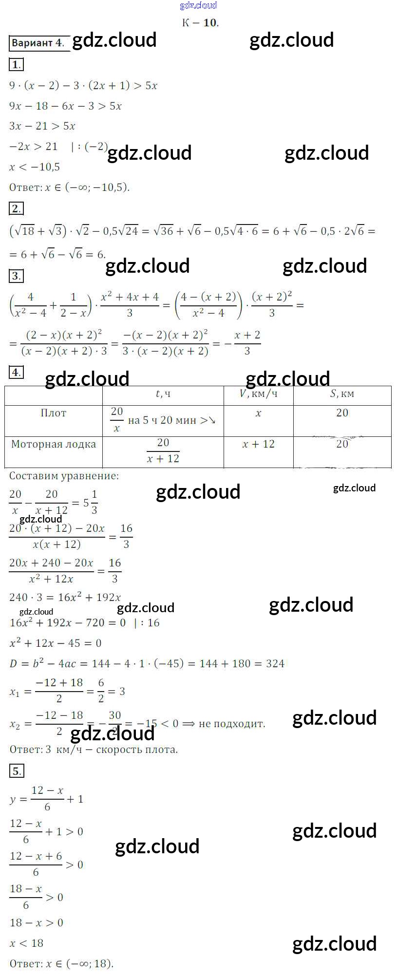 КР №10 Ответы к Контрольным работам по Алгебре 8 класс Дидактические материалы Жохов Просвещение