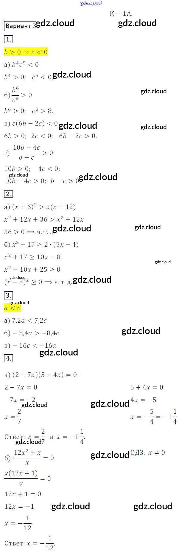 КР №1A Ответы к Контрольным работам по Алгебре 8 класс Дидактические материалы Жохов Просвещение