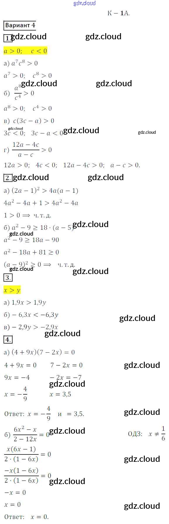 КР №1A Ответы к Контрольным работам по Алгебре 8 класс Дидактические материалы Жохов Просвещение