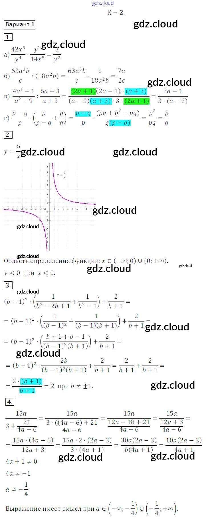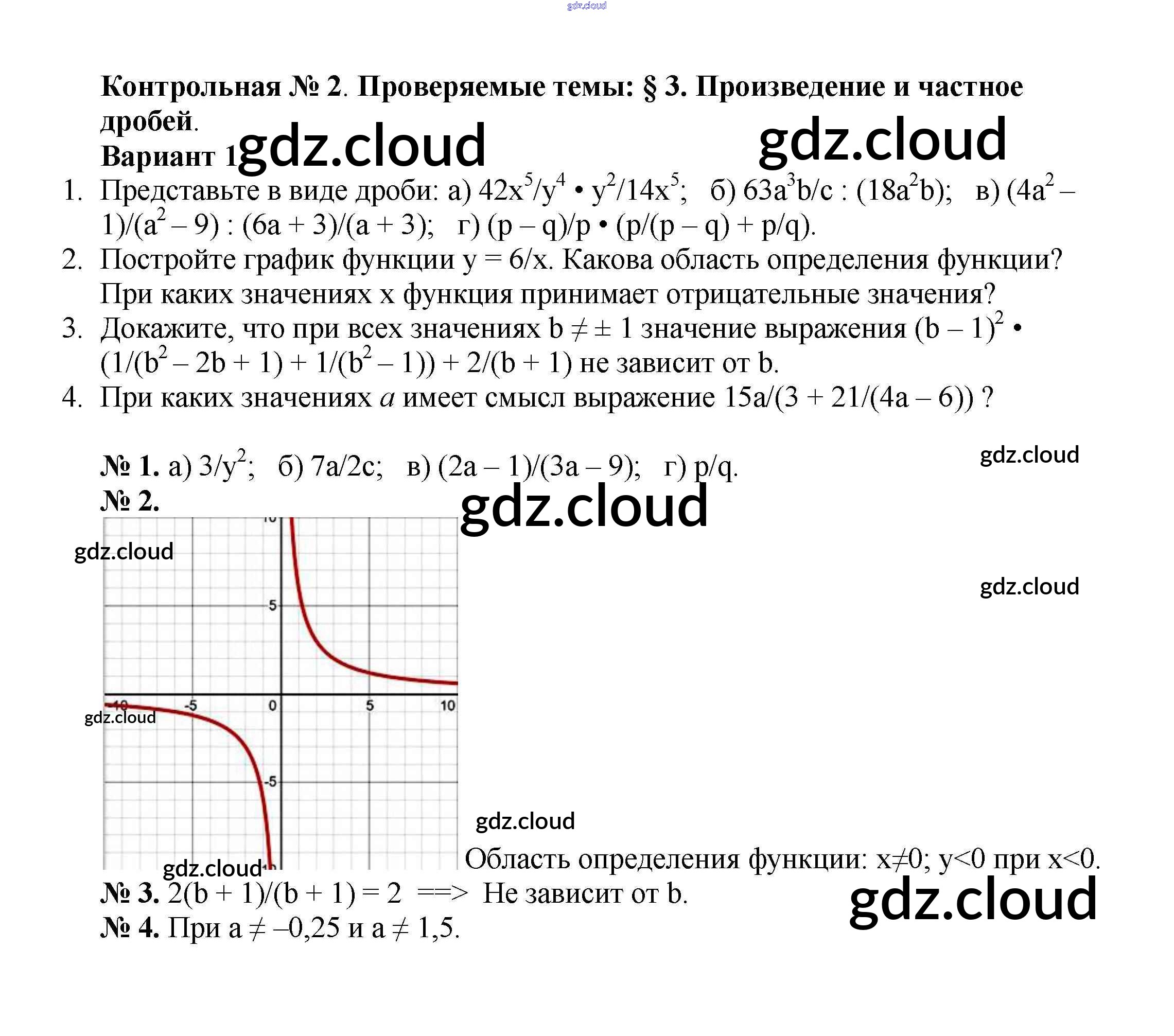 КР №2 Ответы к Контрольным работам по Алгебре 8 класс Дидактические материалы Жохов Просвещение