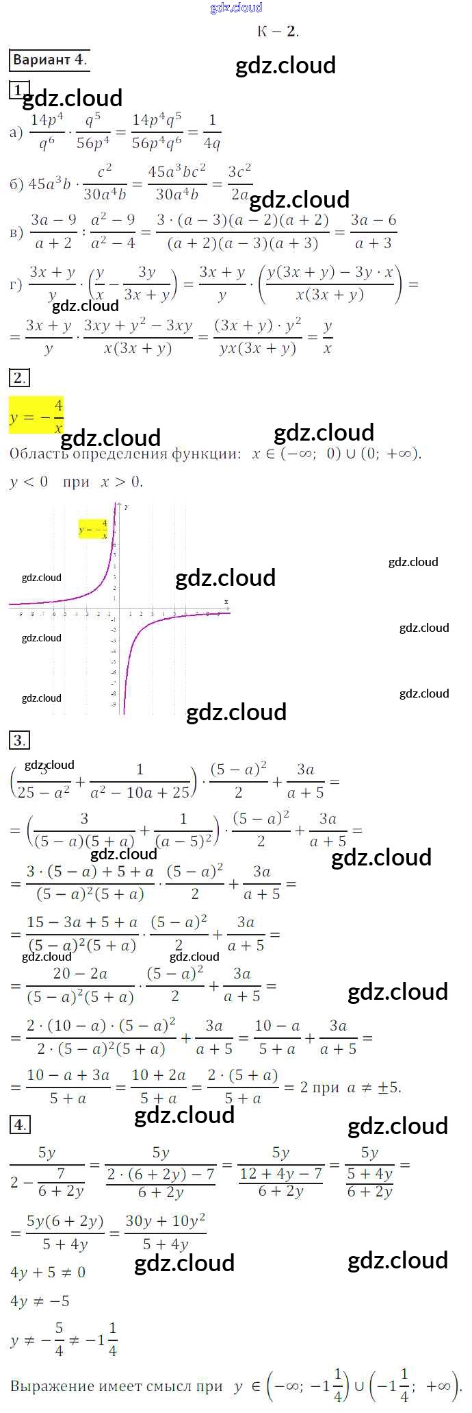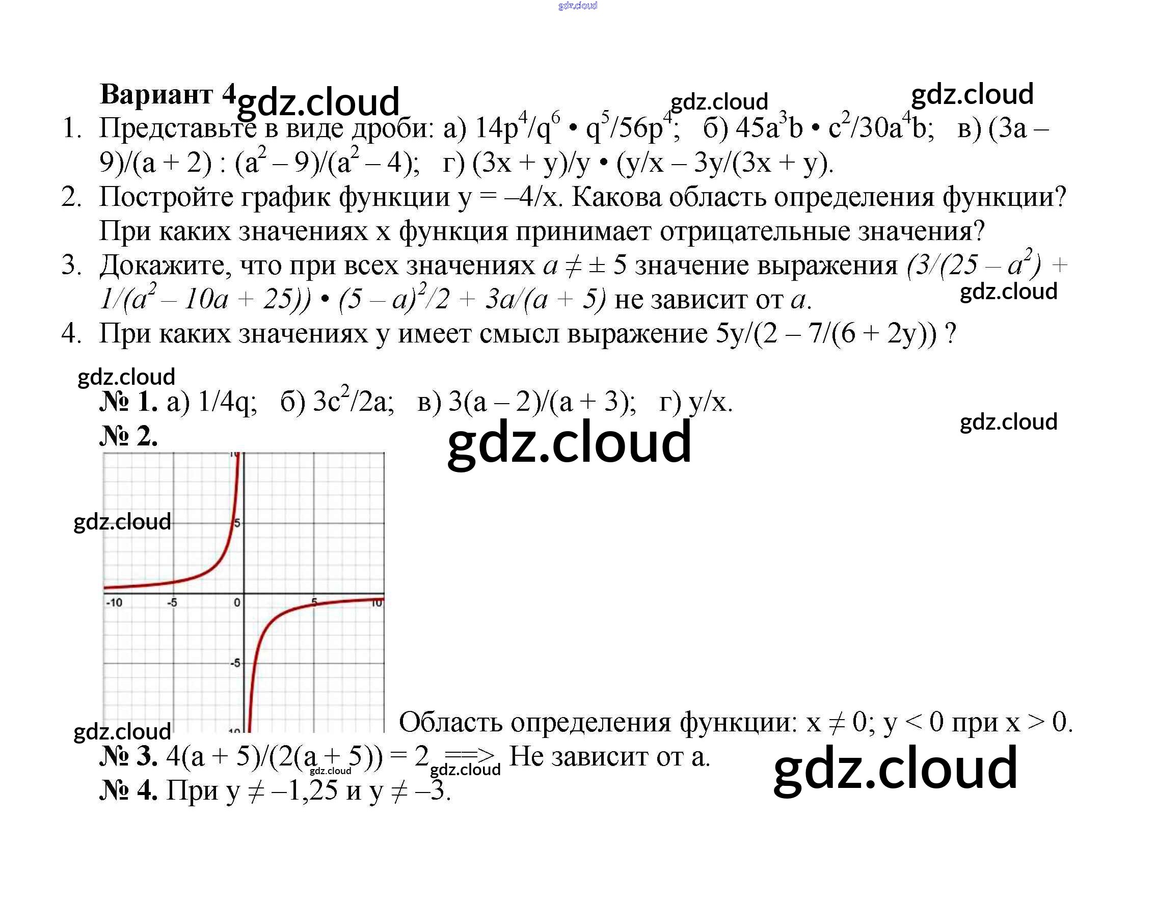 Ответ на задание вариант 4 Дидактические материалы Алгебра за 8 (восьмой) класс Жохов, Макарычев, Миндюк 2014