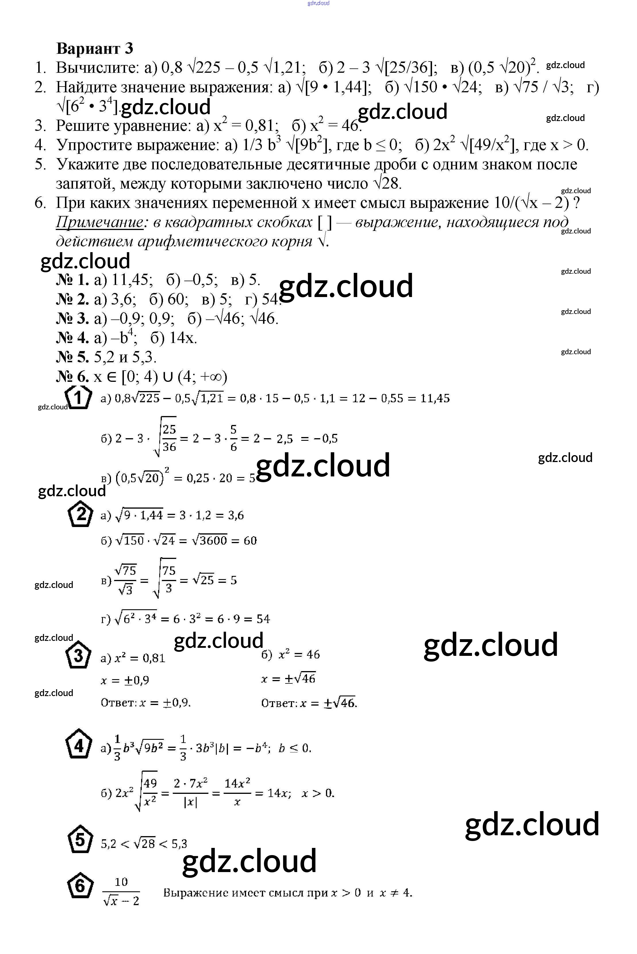 Ответ на задание вариант 3 Дидактические материалы Алгебра за 8 (восьмой) класс Жохов, Макарычев, Миндюк 2014