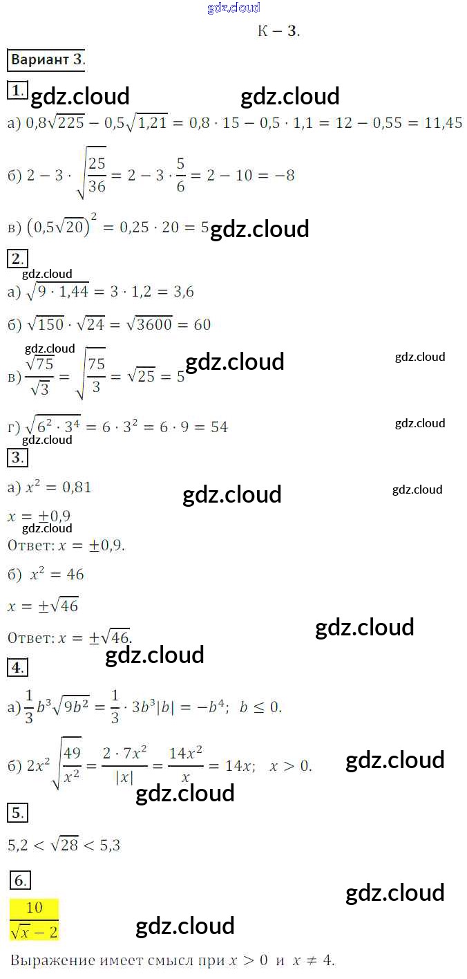 КР №3 Ответы к Контрольным работам по Алгебре 8 класс Дидактические материалы Жохов Просвещение
