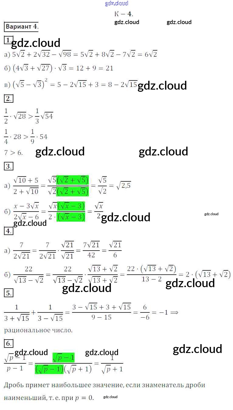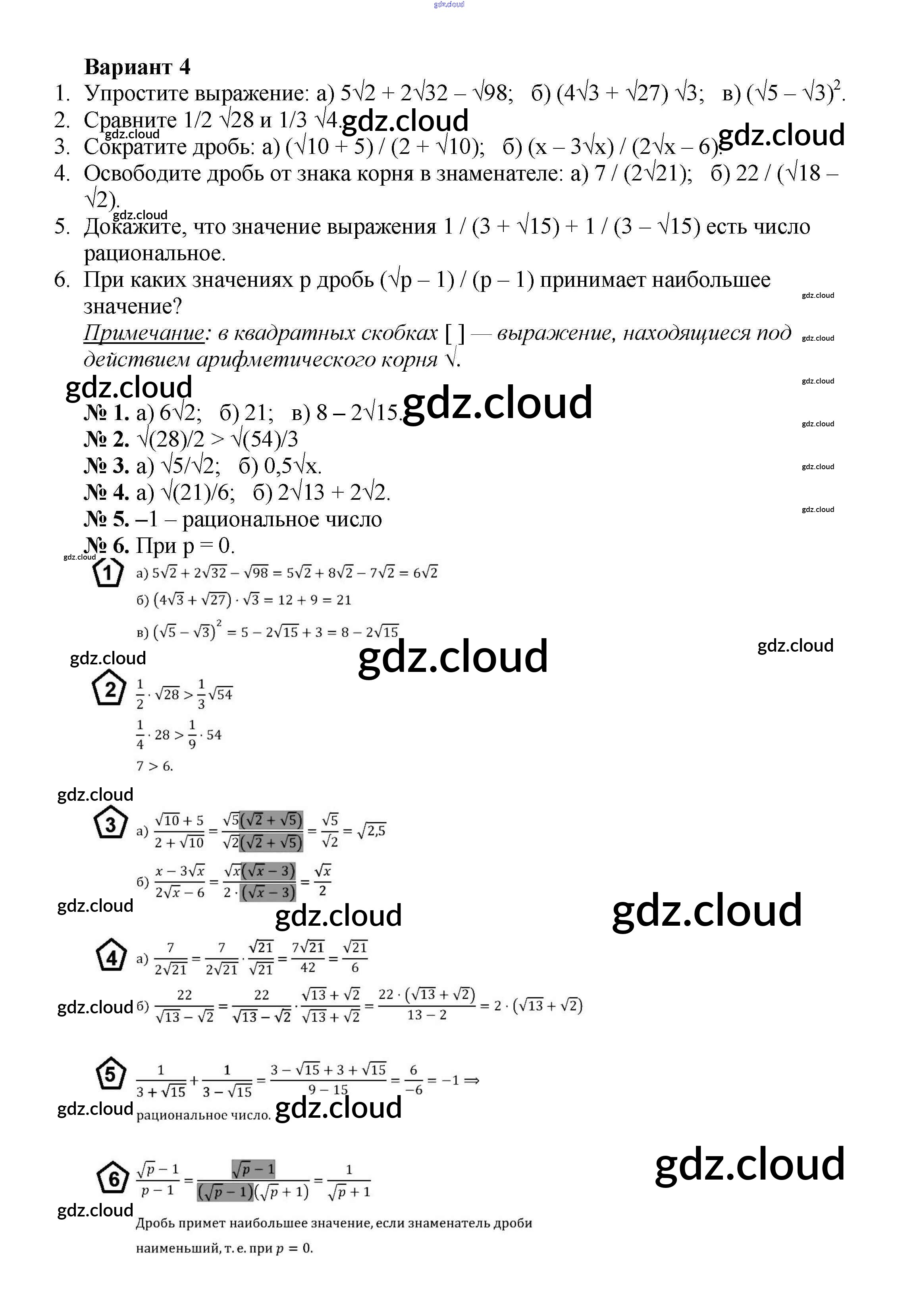 КР №4 Ответы к Контрольным работам по Алгебре 8 класс Дидактические материалы Жохов Просвещение