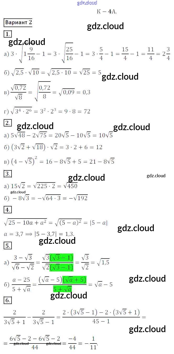 КР №4A Ответы к Контрольным работам по Алгебре 8 класс Дидактические материалы Жохов Просвещение
