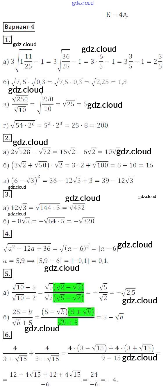 КР №4A Ответы к Контрольным работам по Алгебре 8 класс Дидактические материалы Жохов Просвещение