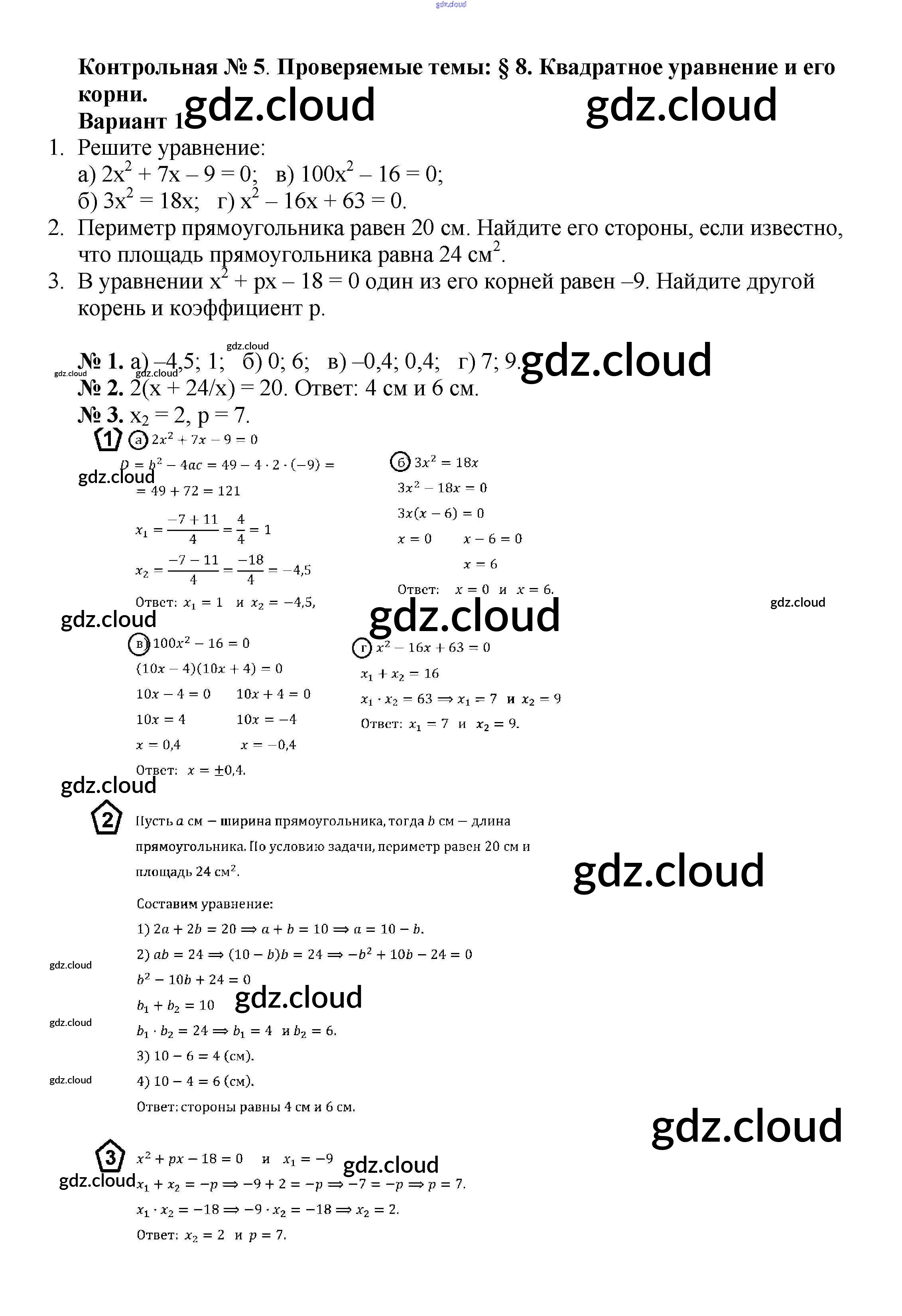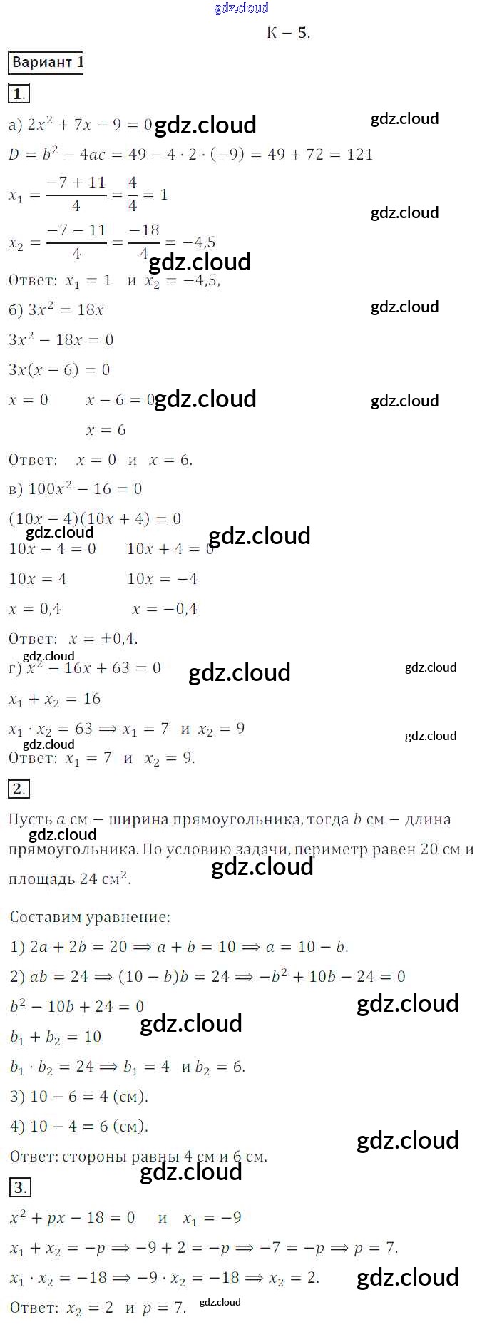 КР №5 Ответы к Контрольным работам по Алгебре 8 класс Дидактические материалы Жохов Просвещение