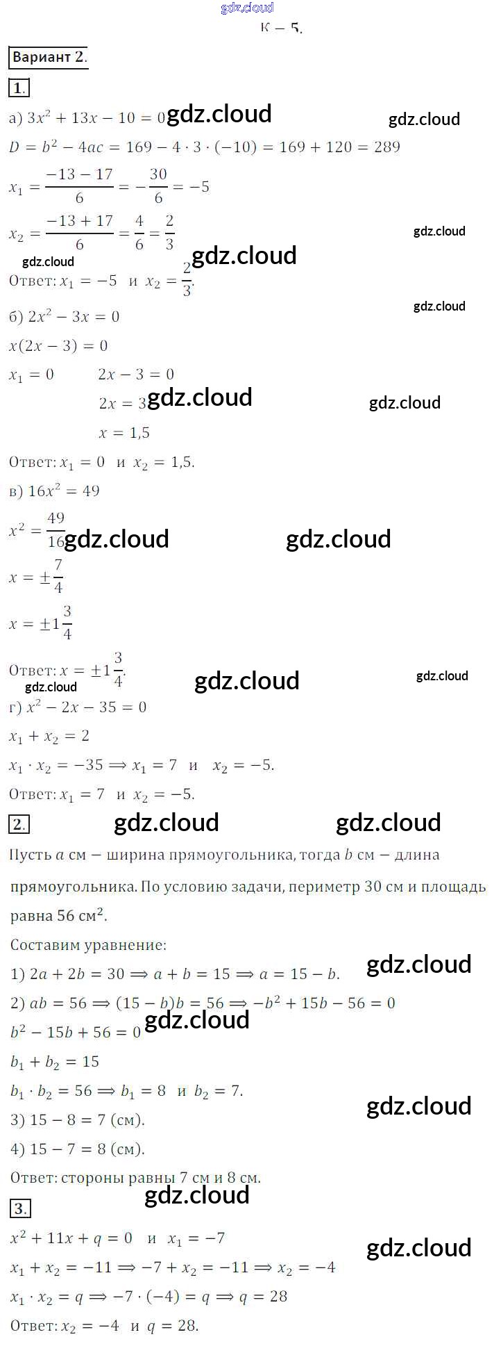 КР №5 Ответы к Контрольным работам по Алгебре 8 класс Дидактические материалы Жохов Просвещение