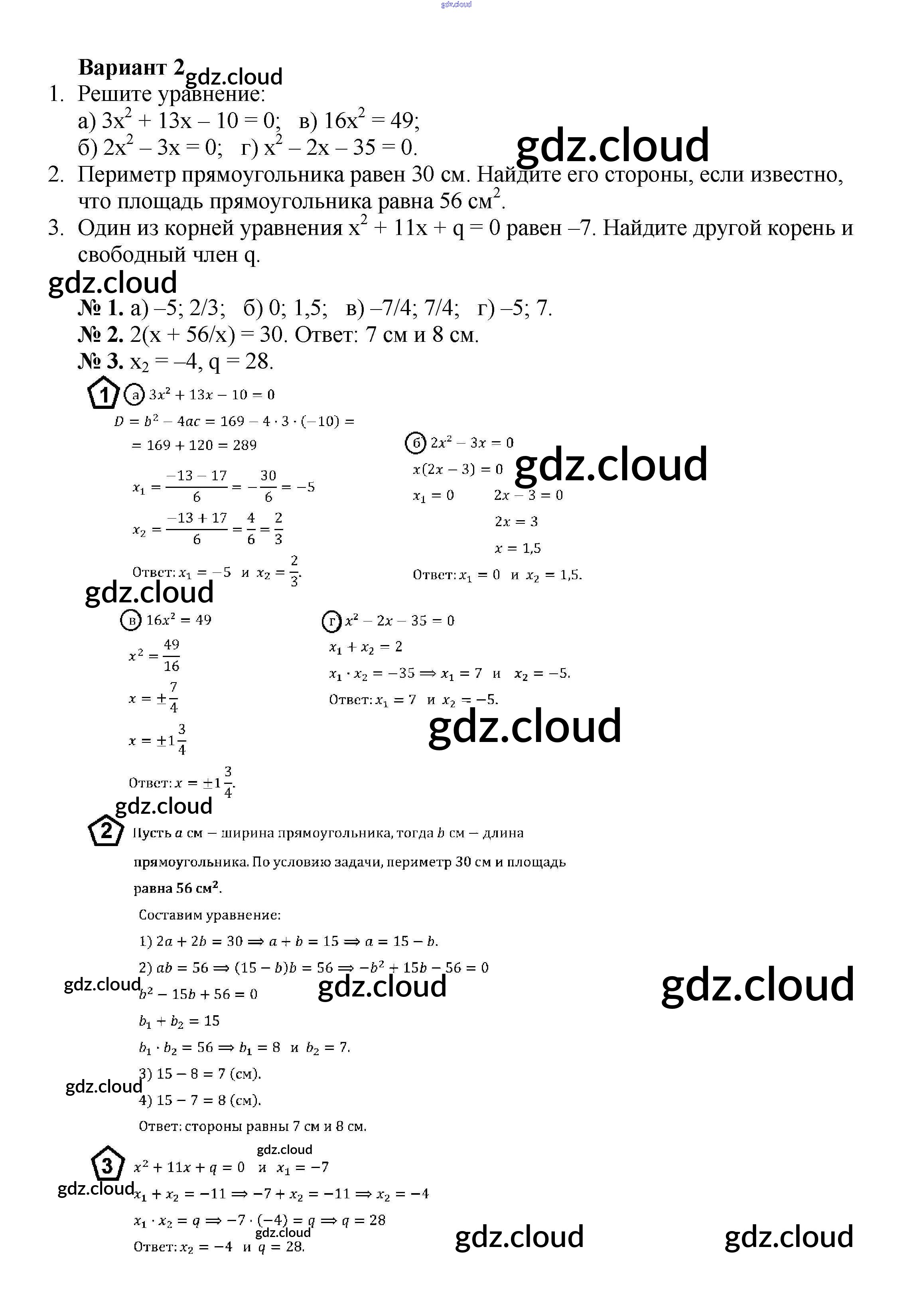 Ответ на задание вариант 2 Дидактические материалы Алгебра за 8 (восьмой) класс Жохов, Макарычев, Миндюк 2014