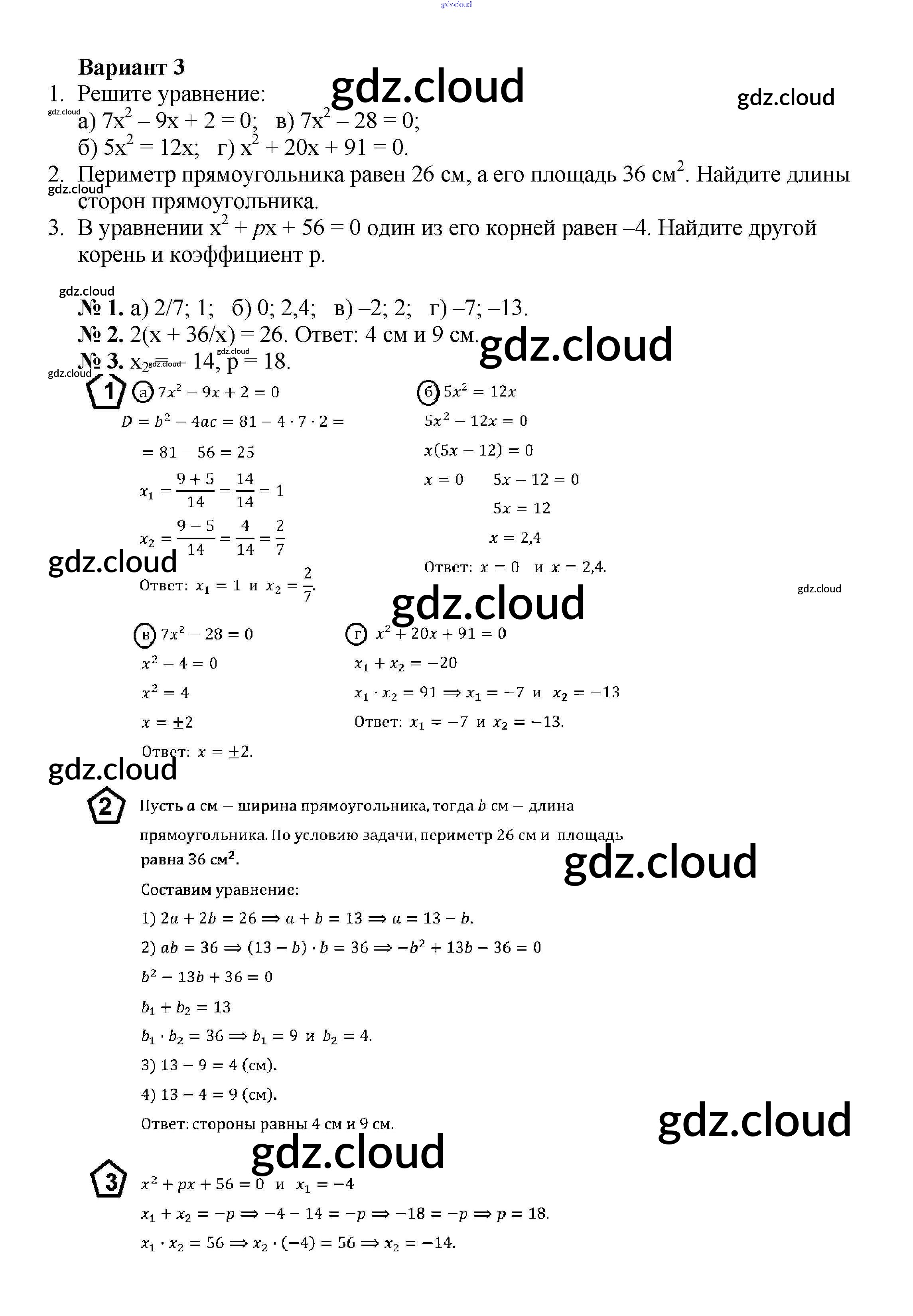 Ответ на задание вариант 3 Дидактические материалы Алгебра за 8 (восьмой) класс Жохов, Макарычев, Миндюк 2014