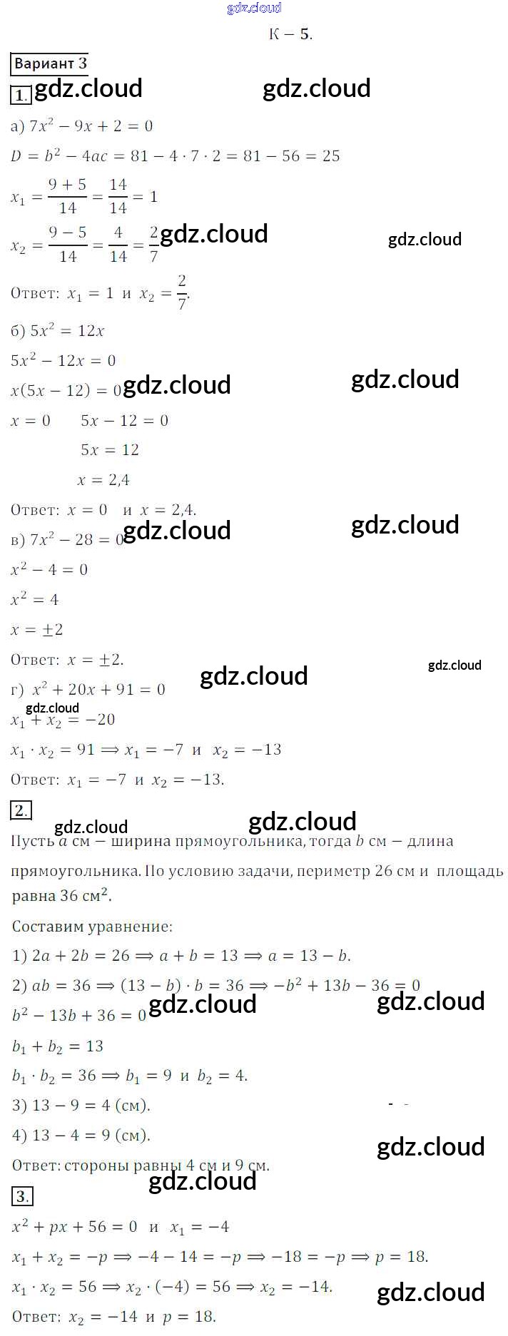 КР №5 Ответы к Контрольным работам по Алгебре 8 класс Дидактические материалы Жохов Просвещение
