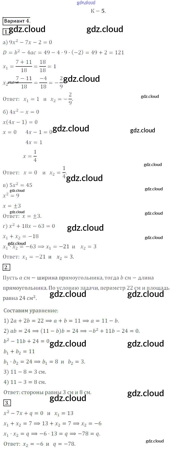 КР №5 Ответы к Контрольным работам по Алгебре 8 класс Дидактические материалы Жохов Просвещение