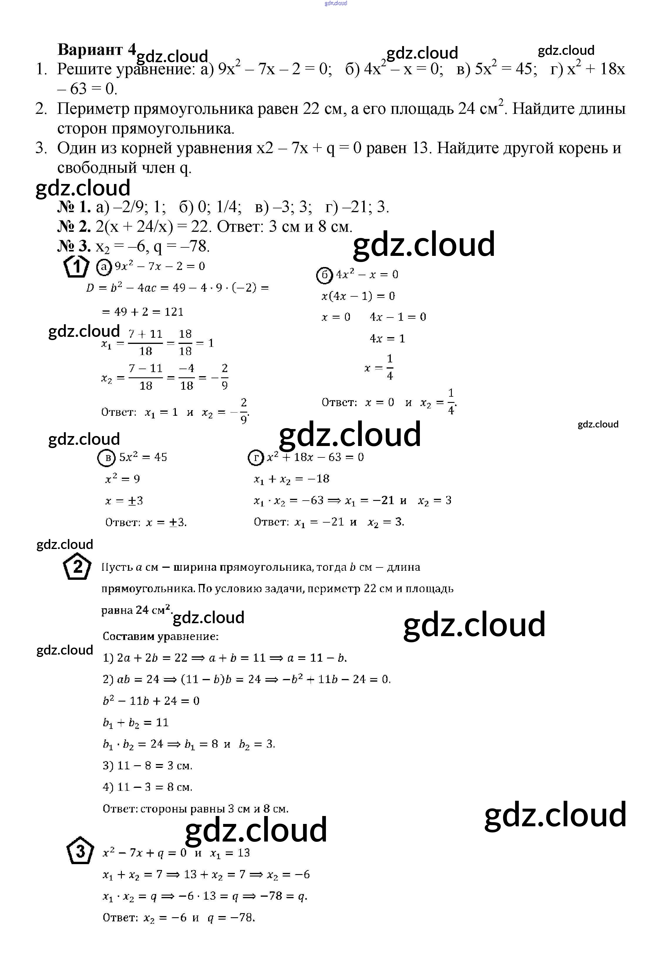 Ответ на задание вариант 4 Дидактические материалы Алгебра за 8 (восьмой) класс Жохов, Макарычев, Миндюк 2014