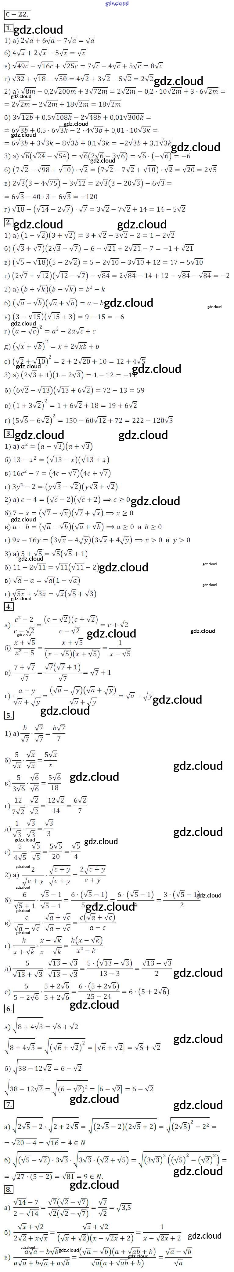 Ответ на задание СР №22 Дидактические материалы Алгебра за 8 (восьмой) класс Жохов, Макарычев, Миндюк 2014