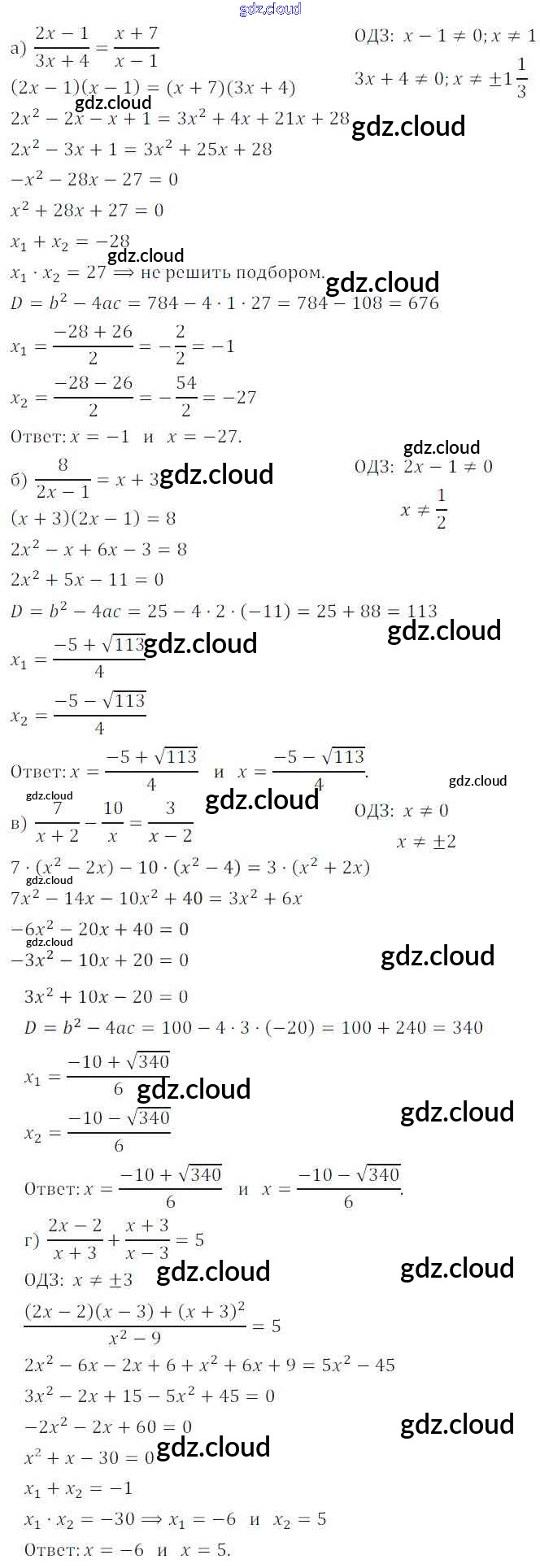 Квадратные уравнения Ответы к Итоговому повторению (под ред. Тихонового) по Алгебре 8 класс Дидактические материалы Жохов Просвещение