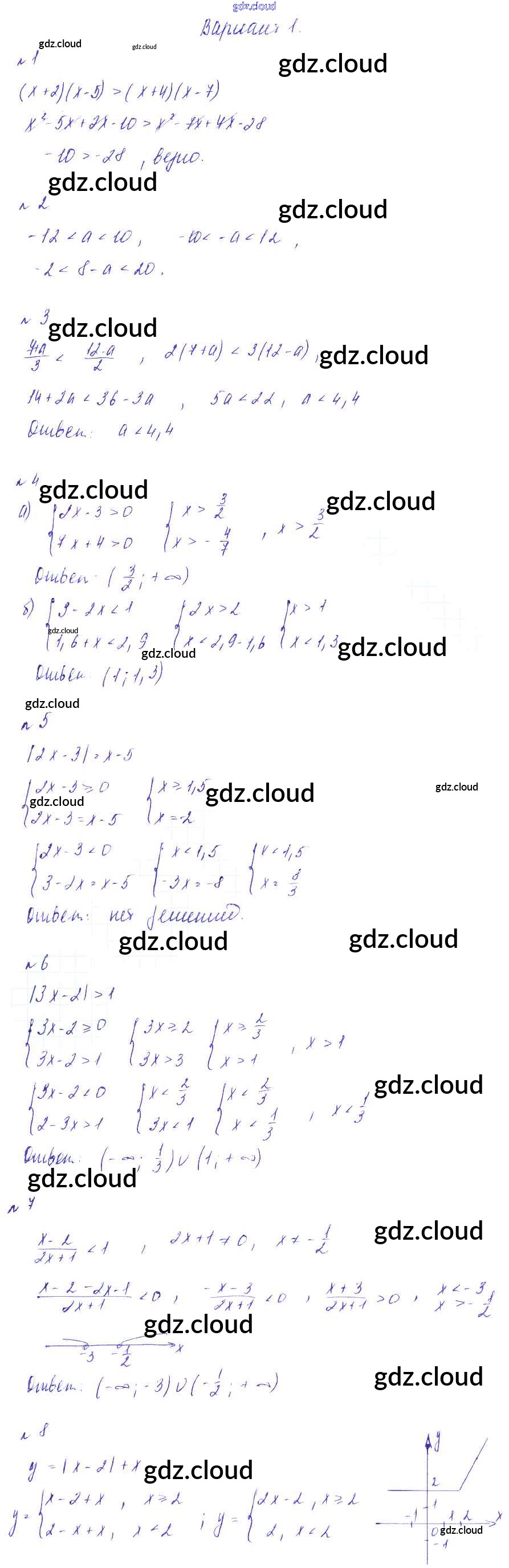 КР №1. Неравенства. Варианты Ответы к Контрольным работам по Алгебре 8 класс Дидактические материалы Зив Виктория плюс