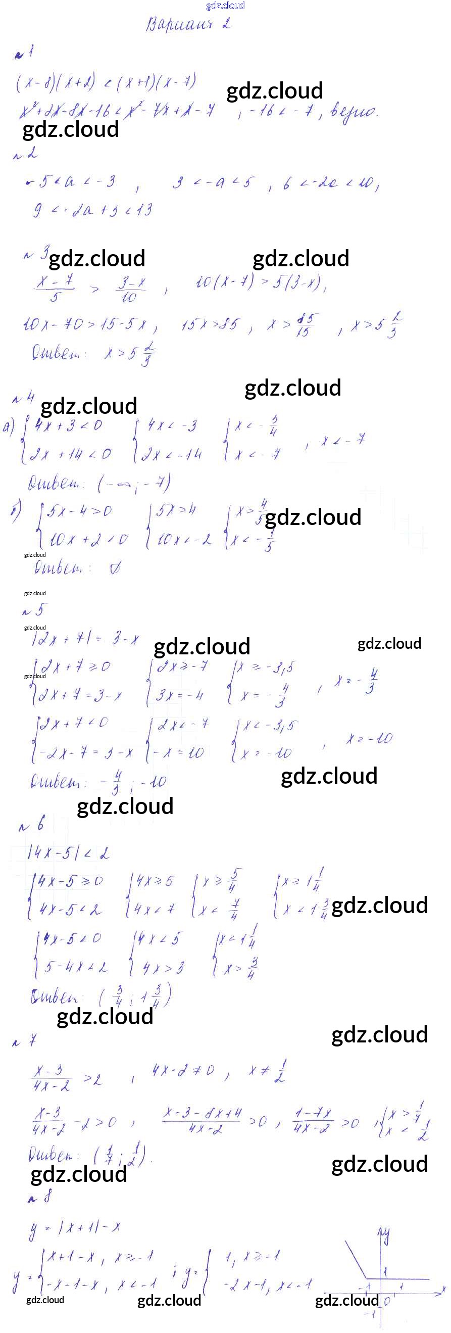 КР №1. Неравенства. Варианты Ответы к Контрольным работам по Алгебре 8 класс Дидактические материалы Зив Виктория плюс