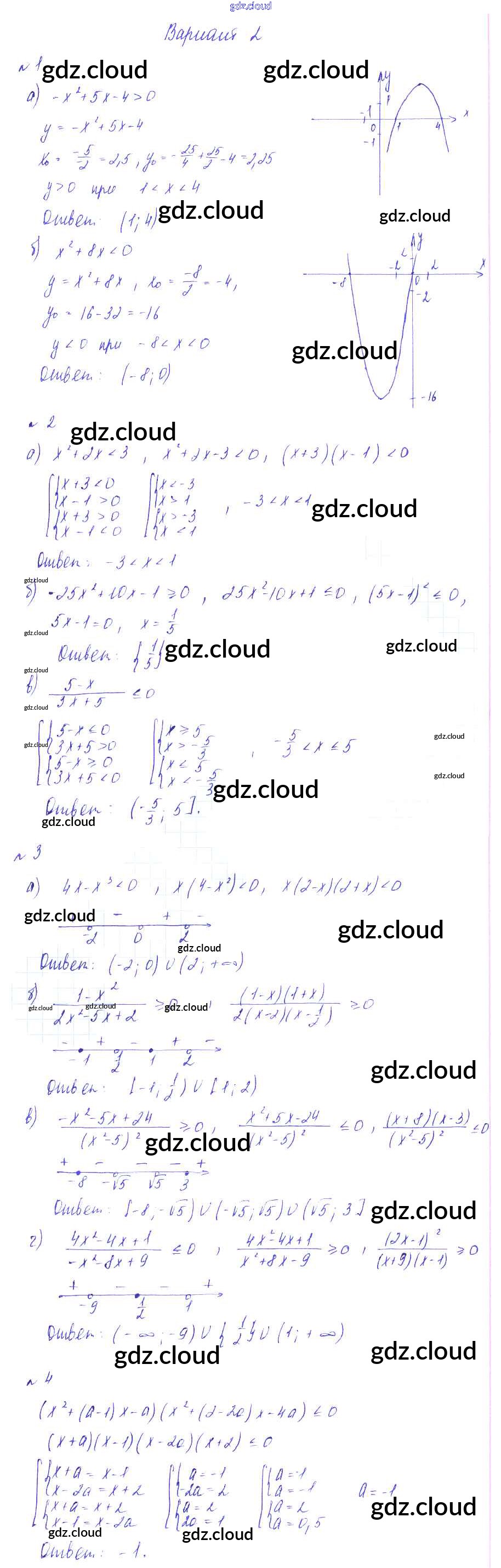 КР №5. Квадратичная функция. Варианты Ответы к Контрольным работам по Алгебре 8 класс Дидактические материалы Зив Виктория плюс
